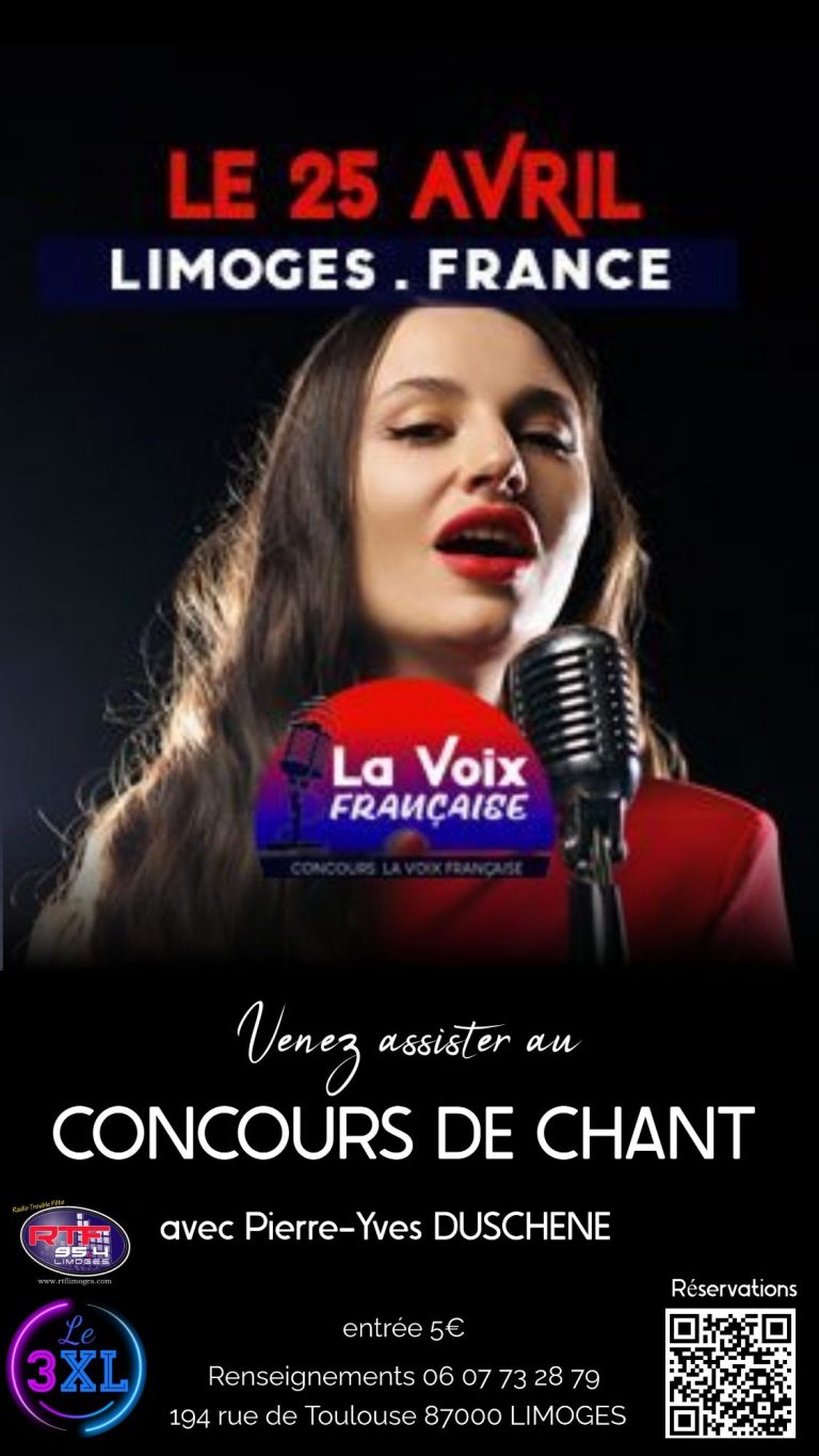 Venez assister au concours de chant organisé par La Voix Française avec la présence de Pierre-Yves DUSCHENE. Le concours sélectionnera les meilleurs chanteuses et chanteurs dans plusieurs catégories pour la grande finale qui se déroulera à PARIS.